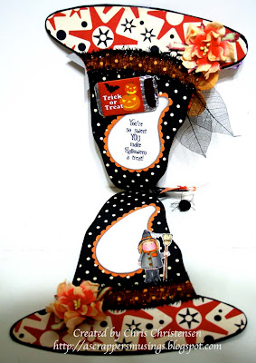 The Hooked on Craft Design Team has provided wonderful examples to get your mojo going. Please visit their blogs to see the details on their wonderful creations. Here is my example. I chose to make a witch's hat-shaped card.