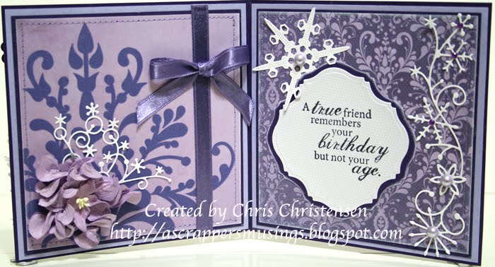 Challenge #15 - Try Something New, I decided to give an Angled Accordion Fold Card a try. I have to say, it was a lot of work only because of how I did it. I know it would have been a lot easier if I had used a heavy, almost cardstock weight, double sided paper and only did one side. But, that would have been too easy. I wanted to challenge myself! Isn't that what challenges are all about?