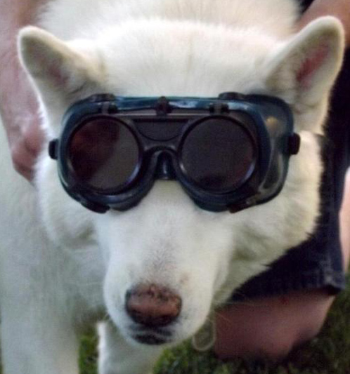 Does the father in the first photo shown below realize what he is so innocently doing to his son's young eyes? Whomever put the goggles on their pets had more sense (even though the pets probably wouldn't be inclined to view a solar eclipse)! I have blurred the faces so that their identities are protected.