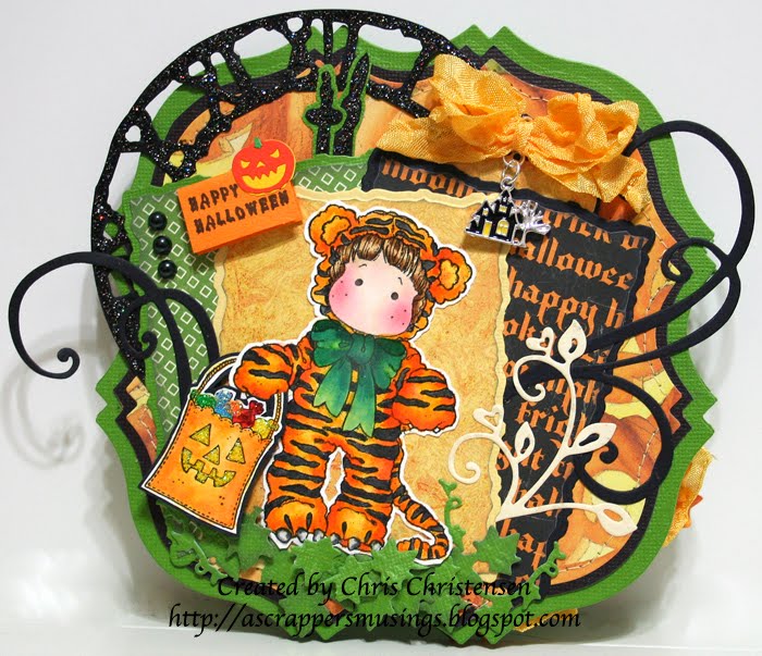 I have had this stamp since it first came out. This is the first time I have inked her up! She is one of my favorites! I knew I wanted her for Halloween! Here is the rest of the card - guess what - I made it another easel! That's #3 for me! Woo Hoo!