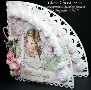 Isn't that image sweet? The Tilda image is a nice size, too! She fits into lots of dies. The sentiment is from the edge of one of my Pion papers, LOL. Tilda was colored with DIs. I added Stardust Stickles to the cloud and her wing.