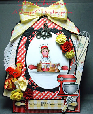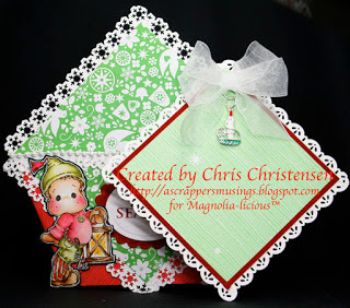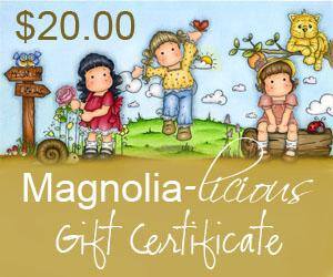 Today is "W"ednesday at the Magnolia-licious Challenge Blog! Today, Karen and I have cards to share featuring stamps that Diana also has in her shop. I hope you like them! I have chosen to use a mini Tilda as well as a Magnolia rolling pin on a kitchen/cooking themed tag. My Tilda can be found HERE. The best thing is that Diana has her on sale for only $1.50!!! I thought it would be a nice way to say "Thank you" to someone who had invited you to share a meal with them! Here is a photo of the tag front: